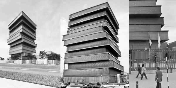 Creo que este proyecto cumple con todas esas razones, pero es, además, un mal plagio de un proyecto que lo precede en muchos años: el Edificio Las Palmas, en México, construido en 1975 por Juan Sordo Madaleno. Pero en realidad, es otra la razón por la que este edificio me indigna. Es un edificio que, literalmente, le da la espalda a la gente. Si fuera un banco o unas oficinas, sería discutible. Siendo el Ministerio de Educación es sintomático y casi un crimen. Macizo, con una pésima relación con la calle, mal negociada a través de una reja, y, peor aún, ubicado a pocos metros de viviendas y calles que parecen casi olvidadas, a pesar de sus nombres sugerentes: Arqueología, Historia, Cultura, Naturaleza. En lugar de volver al edificio una oportunidad para brindar a la ciudad algo de esos cuatro aspectos básicos de nuestra identidad, el arquitecto optó por la trillada solución cerrada, que nada aporta a la ciudad.