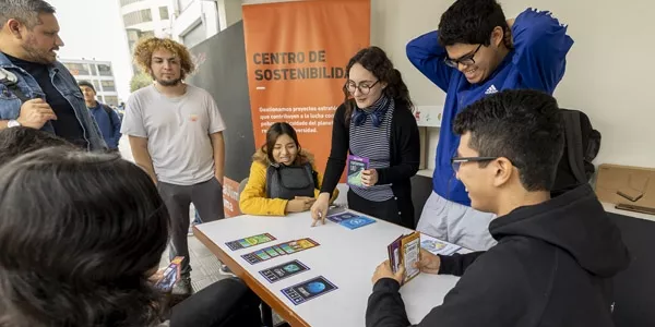 En simultáneo, en el hall del Edificio C, se realizaron juegos de mesa denominados Cartas ODS y se instaló una pizarra con ideas ambientales. En esta, los alumnos colocaron sugerencias para reducir el uso de plástico en el campus de la Universidad.