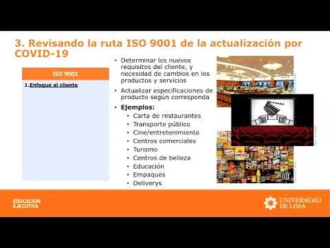 Sobre el ISO 9001, la experta indicó que se deben determinar las nuevas necesidades del cliente, lo que puede implicar cambios en el alcance de los sistemas y en las declaraciones de políticas de gestión de calidad. En cuanto al contexto de la organización, hay que identificar las características del nuevo entorno que afectan la capacidad de alcanzar los objetivos de gestión de calidad; por tanto, deben actualizarse las estrategias para alcanzar los nuevos objetivos. Entre esos rasgos figuran la aparición de nuevas actividades en los procesos que generan menor rapidez en la entrega del producto, aforos reducidos y el incremento de costos, que deberán compensarse con mejora de procesos y estandarización.