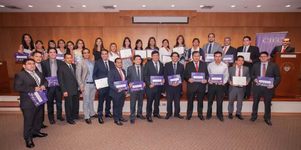 Los grupos de abril y mayo de estudiantes que cursaron el Programa de Especialización Avanzada en Normas Internacionales de Información Financiera (NIIF), ofrecido por el Centro Integral de Educación Continua (CIEC), celebraron su ceremonia de graduación el 7 de abril en el Auditorio S. Además de sus amigos y familiares, estuvieron presentes Milagros Villanueva, directora del CIEC, Nolberto Torres, coordinador del programa, y Víctor Burga, socio de Ernst & Young.