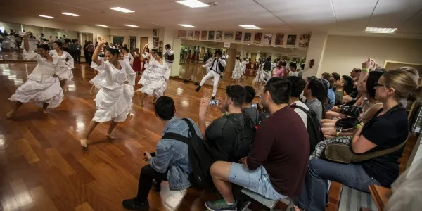 Antes de partir y seguir con su recorrido por la capital, la delegación canadiense visitó nuestro Centro Cultural y se dio tiempo para observar en vivo algunos de los talleres que ofrece la Universidad en los ambientes de la Zona de Expresión Artística (ZEA). Los asistentes disfrutaron de pequeñas muestras de teatro, canto, impro y danzas afroperuanas.
