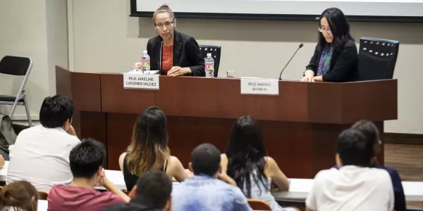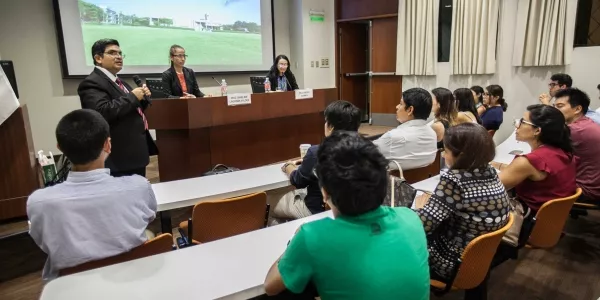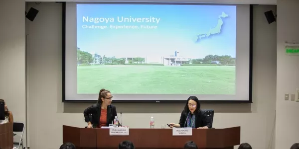 El conversatorio, llevado a cabo el 14 de marzo en el Aula Magna B, contó con la presencia de Jakeline Lagones, peruana doctorada por GSID, y Naoko Shinkai, docente de GSID. Shinkai dio a conocer a los asistentes las virtudes de su universidad, localizada entre Tokio y Osaka en una zona con mucha riqueza histórica. La Universidad de Nagoya, comentó, tiene una excelente reputación académica, sostenida, por ejemplo, en los seis premios Nobel obtenidos por egresados suyos.