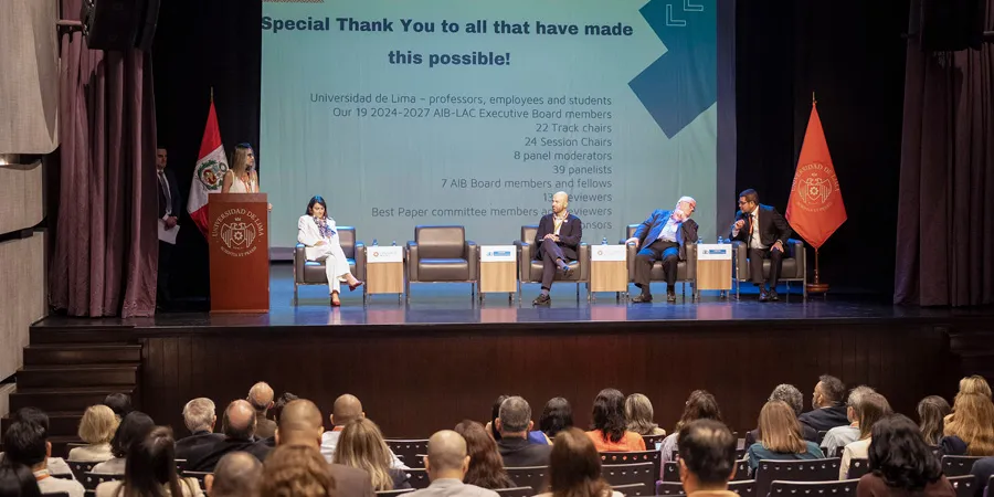 Antonio Esquivel, director de Internacionalización de la Universidad de Lima, destacó que la realización de este encuentro fortalece el proceso de internacionalización de la institución, al abrir nuevas oportunidades de colaboración con universidades y académicos de todo el mundo. Por su parte, Dinorá Floriani, Chapter Chair de AIB-LAC, resaltó la importancia de que la Universidad de Lima sea anfitriona de este tipo de iniciativas, que promueven la investigación y el desarrollo del conocimiento en negocios internacionales en el continente.