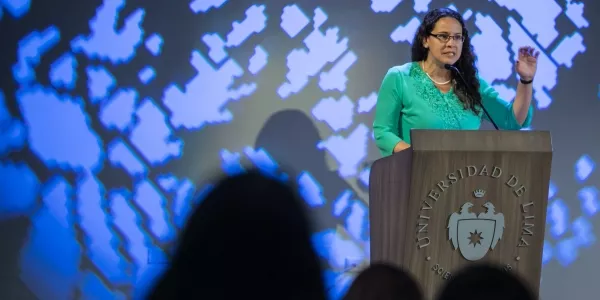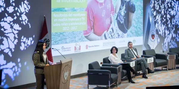 Óscar Quezada Macchiavello, rector de nuestra Universidad, abrió la conferencia con una reflexión sobre la ausencia de contenidos y producciones dirigidos a menores de edad. Por su parte, Olga Isaza, representante adjunta del Fondo de las Naciones Unidas para la Infancia en Perú, expuso las conclusiones del monitoreo de medios de comunicación. El estudio, realizado de 2012 a 2017, indica que existe un interés de la prensa nacional por abordar los problemas que afectan a la niñez y la adolescencia, pero formula el desafío de incorporar su voz y de mejorar el tratamiento informativo. Isaza señaló: