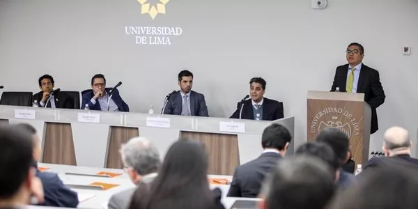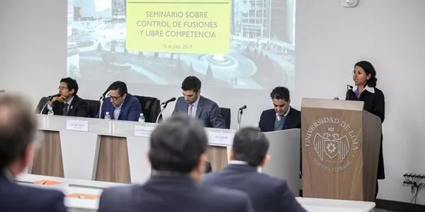 El martes 16 de julio, en el Aula Magna T-4, la Maestría en Derecho Empresarial de la Escuela de Posgrado de la Universidad de Lima realizó la conferencia "Control de fusiones y libre competencia", a propósito del proyecto de ley que establece el control previo de fusiones y adquisiciones empresariales, próximo a aprobarse.