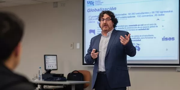 El ingeniero químico industrial español, doctor en Biotecnología Ambiental por la Universitat de Barcelona y docente en la Maestría en Dirección de Operaciones y Proyectos de nuestra Casa de Estudios, reflexionó sobre cómo esta industrialización 4.0 ha afectado al concepto del trabajo como tal (gracias a la tecnología, hoy un trabajador puede laborar en cualquier momento y desde cualquier ubicación que no sea un centro laboral convencional) y el reto que significan los nuevos puestos de trabajo que la tecnología requiere. Baraza dijo: