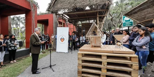 El lunes 29 de octubre, en el jardín de la Cabaña del Edificio G, se inauguró el módulo de la selva realizado por el Círculo de Estudios de Arquitectura Sostenible (CEAS) como parte de la campaña de responsabilidad social que la Universidad y dicho círculo vienen realizando en la comunidad de Alto Camonashari en el departamento de Junín.