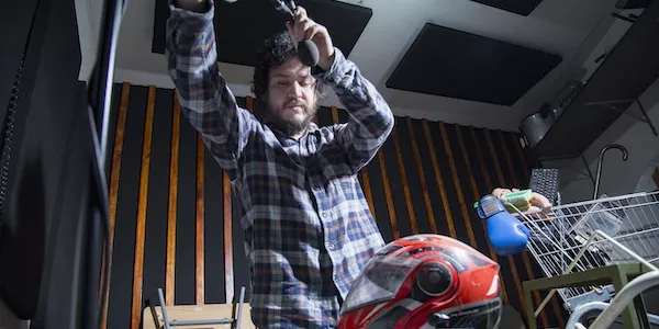 El estudio foley tiene ciertas características. Está bastante aislado del ruido externo, tiene una acústica controlada y cuenta con mucha utilería, porque tenemos que estar preparados para hacer diferentes sonidos, como de metal, madera y diferentes superficies, en general. Hay personajes que caminan sobre la tierra o sobre cemento, y ese cemento puede ser liso, rugoso, etcétera. Todo eso marca una diferencia en el sonido. Por eso necesitamos muchos elementos para conseguir diferentes sonoridades. Me inicié en esta aventura trabajando solo. En los primeros años me enfoqué en desarrollar mi habilidad y mi experiencia, hasta que sentí que era el momento de crear Soundmaker Studio, el primer estudio especializado en foley en el Perú.