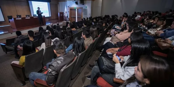 Marco Henrich, docente de nuestra Carrera de Ingeniería Industrial, abrió la jornada de oradores y habló sobre liderazgo personal y gestión de empleabilidad. Liliana Alfaro, docente universitaria de trayectoria, motivó a los jóvenes a impulsar proyectos de emprendimiento social desde las aulas.