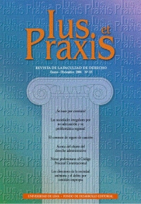 Derecho civil La responsabilidad civil a través del articulado del Código Civil / Rafael Villanueva Merino Interés motivacional y efectos del pago Marco / Antonio Ortega Piana ¿Se nace por contrato? / Francesco D. Busnelli La firma en los actos jurídicos / Mario Castillo Freyre Análisis del régimen de la patria potestad: ¿Pertinencia de su regulación exclusiva por el Código de los Niños y Adolescentes? / María Teresa Cornejo Fava Derecho empresarial Las sociedades irregulares por no adecuación y su problemática registral / Oswaldo Hundskopf Exebio El contrato de seguro de caución / Roberto Vélez Salinas Competencia desleal a propósito del registro de marca de mala fe / Pamela Johanson Bettocchi Defensa del consumidor. ¡Oiga!... ¿Y mi vuelto? / Carlos Torres Morales Derecho administrativo En busca de la dracma perdida: Acerca del objeto del derecho administrativo / Juan Felipe Isasi La revocatoria del acto administrativo a favor del administrado como institución excepcional en el ordenamiento jurídico peruano / Jorge Santisteban de Noriega y Álvaro Quiroga Leyes de transparencia: ¿Una misión imposible? / Martín Luque Rázuri Derecho procesal civil, Derecho procesal constitucional Juez, partes y terceros en el cautelar / Eugenia Ariano Deho Funciones del juez en los procesos constitucionales / Osvaldo Alfredo Gozaíni Notas preliminares al Código Procesal Constitucional / Ernesto Blume Fortini Derecho penal Los directores de la sociedad anónima y el delito por omisión impropia: Su condición de garantes / César Augusto Nakasaki Servigón Derecho internacional, Derecho internacional de los derechos humanos: Aplicación de oficio del derecho extranjero / Gonzalo García Calderón Moreyra El sistema internacional en el siglo XXI: ¿Hacia un nuevo orden? / Julio José Chan Sánchez La Comisión Interamericana de Derechos Humanos: Admisibilidad y jurisprudencia relevantes / Pedro E. Díaz Romero
